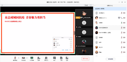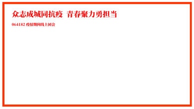 关于调整2019-2020学年第二学期本科教学工作安排的通知》的精神要求,064182团支部积极响应学校“停课不停学”的号召,组织各位同学在家中举行线上团会。在活动开始前,每一位支部成员均提前上线签到,体现了同学们对本次团会的重视程度。14时,全体在线上奏唱国歌,主持人李伟光宣布“众志成城同抗疫,青春聚力勇担当”主题线上团会正式开始。