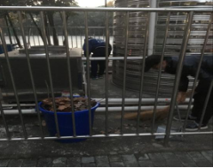 的第三期拟发展对象已经全部聚集在了中国地质大学51栋门前。在组织部负责人汪振和邹凯辉的带领下,同学们纷纷俯身弯腰,捡拾枯枝败叶,清理了车棚和垃圾桶附近的垃圾;摆放自行车;仔细擦洗了51栋外围墙壁。任深秋的黎明寒意彻骨,任尘土飞扬,任飞絮沾身,同学们不怕苦、不怕脏、不怕累,争抢干活,分工合作。经过大约两个小时的埋头苦干,51栋宿舍楼面貌焕然一新。