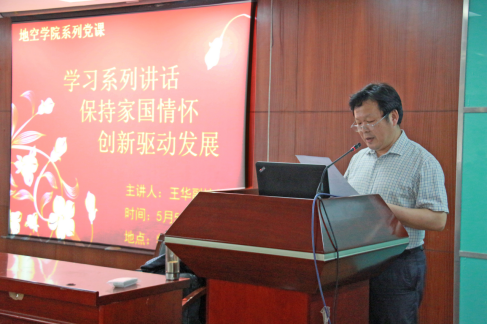 全体师生党员授课,主题为《新时代:深刻领会系列讲话精神,保持家国情怀,以创新驱动为引领,践行伟大梦想》。