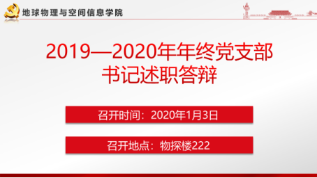 于物探楼222报告厅成功召开2019年度基层党支部书记抓基层党建述职评议考核会议,学院全体学生党支部书记及学生党建工作办公室学生干部参加此次会议。