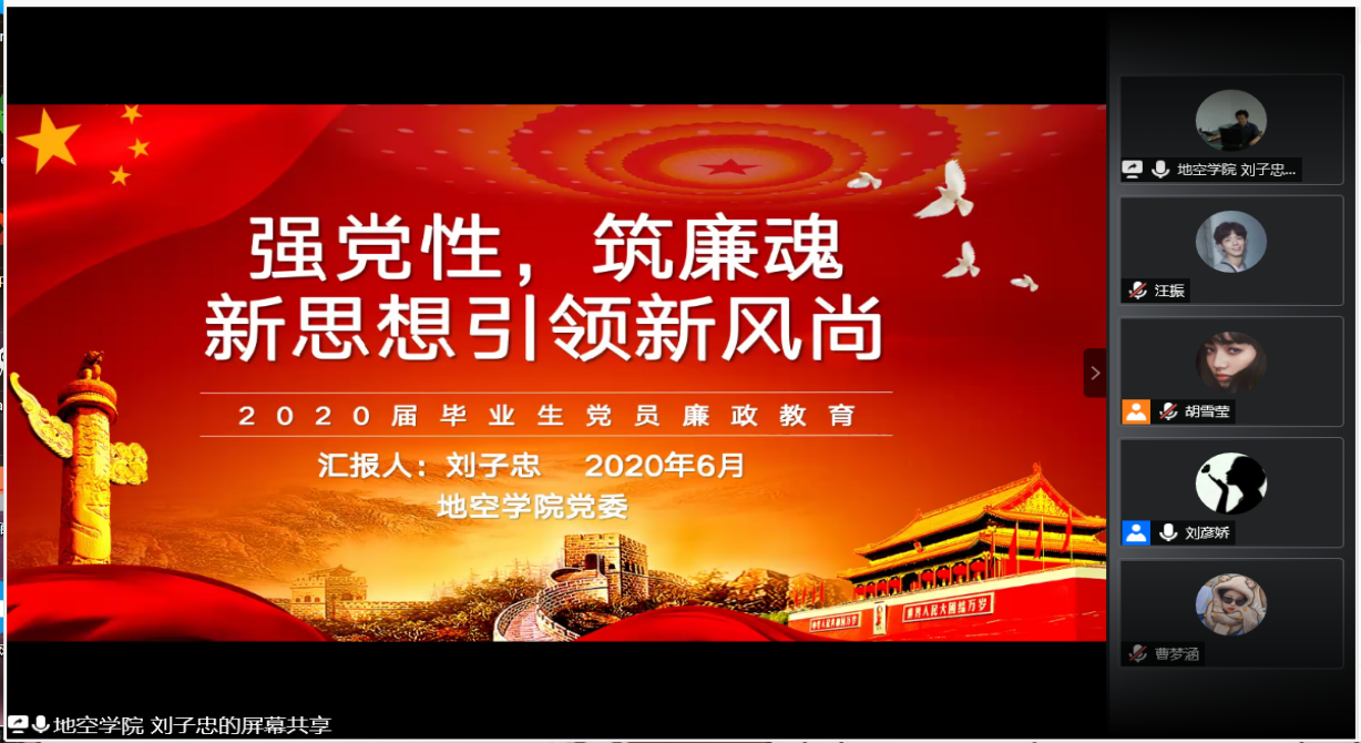(通讯员刘彦娇 汪振)在2020届毕业生即将离校之际, 为深入学习贯彻习近平新时代中国特色社会主义思想和党的十九大精神,贯彻落实全国高校思想政治工作会议精神,紧紧围绕立德树人根本任务,积极培育和践行社会主义核心价值观,进一步引导毕业生廉洁修身,走好迈向社会的第一步,少妇做爱 党委于6月24日晚19:30通过腾讯会议平台组织学院全体毕业生党员进行党员廉政教育。课程由学院党委书记刘子忠主讲,辅导员刘彦娇主持。