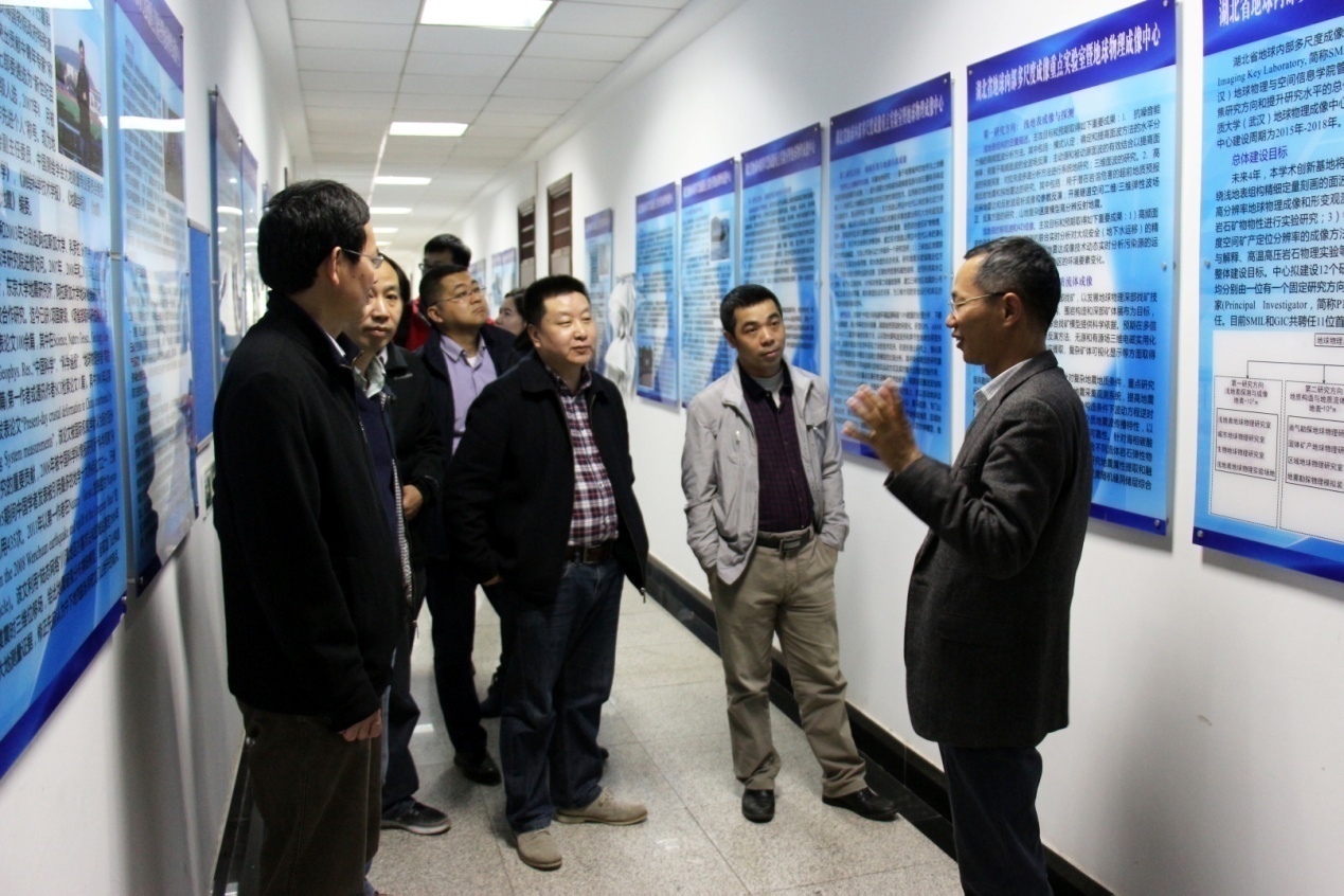 现场评估专家组组长谭必恩教授主持了会议,胡祥云教授代表“地球内部多尺度成像湖北省重点实验室”做了年度考核现场汇报,从实验室基本概况、人才队伍建设、基础设施建设、2015年科研产出、实验室运行体制及中长期规划等方面做了详细汇报,专家组根据汇报内容进行了提问交流、现场考察。