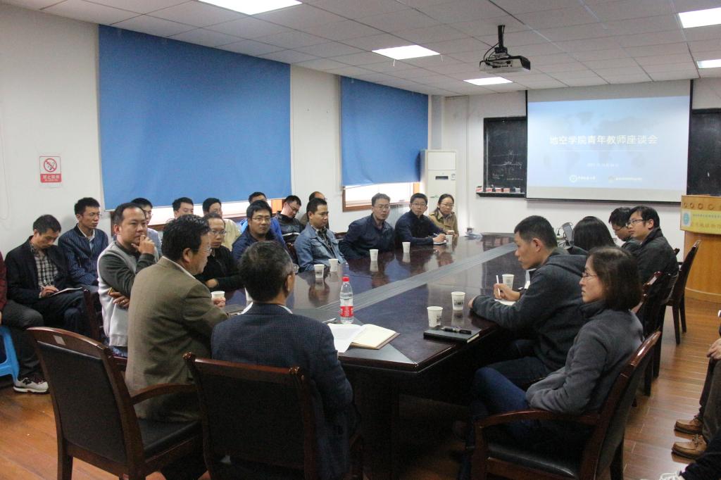 的大家庭里快速的融入和成长。随后,学院青年教师严哲、刘少勇、陈丽霞、赵培强等先后发言,纷纷就如何结合实际更好的进行教学科研、如何有效的提高野外实习教学质量等问题进行讨论和交流,同时对学院和教师进行线上宣传等提出了建设性意见和建议。青年教师在感受到学院对自身的重视之余,也感受到自身科研和教学的压力,均表示在今后的教学科研道路上,再接再厉,共同为学院的发展添砖加瓦。