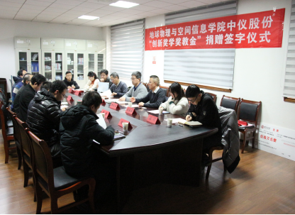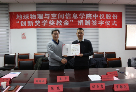 中仪股份“创新奖学奖教金”捐赠仪式在物探楼214会议室举行。武汉中仪物联技术股份有限公司董事长郑洪标、总经理助理张婉珈,副校长王华,学校教育发展基金会副秘书长吕占峰,少妇做爱
