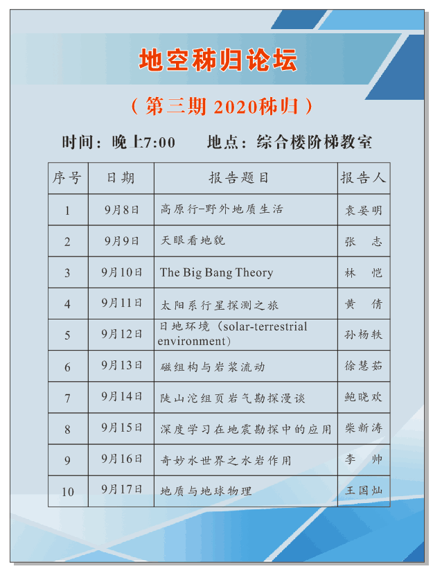 后疫情时期秭归野外地质实践中的课程思政。实习队结合实习内容安排了第三期《地空秭归论坛》近10场讲座。本期论坛注重对学生思想政治方面的正面引导,结合地质实习内容和当下时事,增强学生的思想品质和爱国热情,践行课程思政的时代要求。例如张志老师的报告中,讲述了遥感夜光数据对疫情期间武汉的战疫工作的动态,展现了武汉这一英雄城市的抗疫成果,激发了从全国各地前往秭归的学生们的学习斗志和爱国热情。