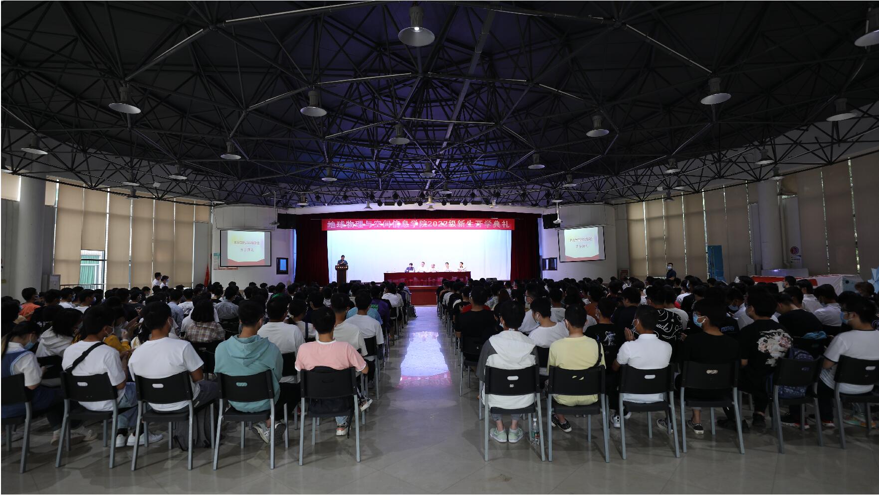 2022级新生开学典礼在大学生活动中心二楼演播厅举行。学院党委书记马彦周,院长熊熊,党委副书记黄金波,副院长顾汉明、吴柯、蔡红柱,各系支部书记、主任,新生班主任,学工组辅导员及全体2022级本研新生参加典礼。典礼由黄金波主持。