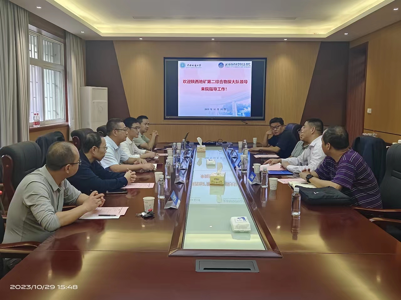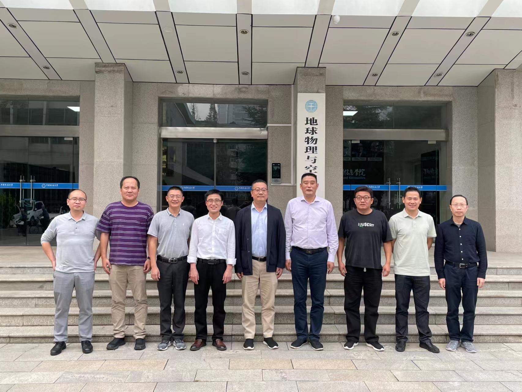 建设发展情况,牛峥介绍了陕西地矿二物发展现状、地质勘查、工勘施工和科技平台,秦长春和参会老师结合前期科研合作进行互动交流。双方就发挥学院学科专业和陕西地矿二物平台区位优势、开展科研立项及基金联合申报达成共建共享共赢初步意向。双方表示,将加大单位、人员往来交流,寻找更多合作空间,促进学院人才培养和单位技术创新发展。