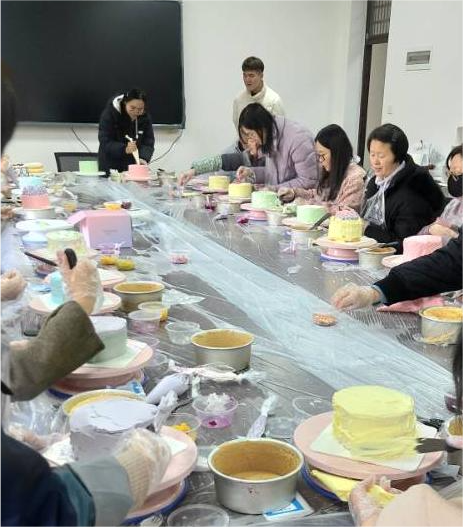 在烘培老师的现场教学示范下,大家各展其能、尽显身手,一番探索忙碌之后,一个个精美蛋糕陆续呈现,现场洋溢着幸福甜蜜的味道。此次活动,不仅丰富了女教师精神文化生活,还为大家充分交流提供了良好平台,增强了学院的凝聚力和职工归属感。