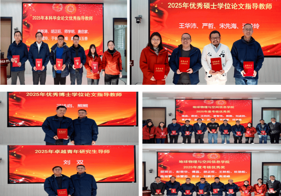 会上,学院对2025年青年教师教学竞赛获奖老师、本科毕业论文优秀指导教师、优秀硕士学位论文指导教师、优秀博士学位论文指导教师、卓越青年研究生指导教师及2025年度考核优秀的老师进行表彰。