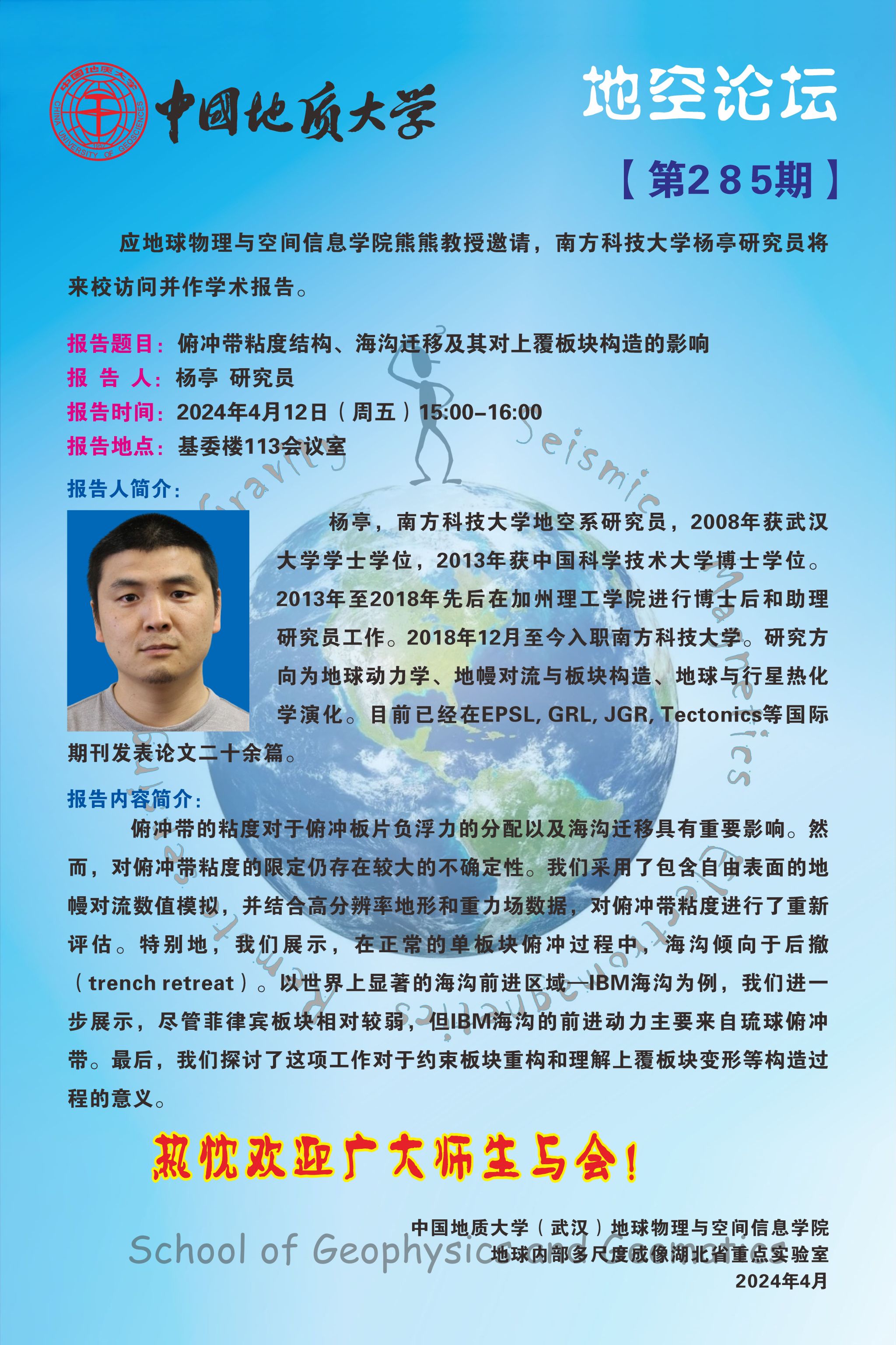 地空论坛【第285期】南方科技大学 杨亭 研究员